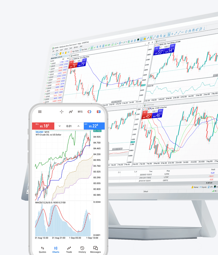 Explore market opportunities with confidence via the industry-leading MetaTrader 4, MetaTrader 5 or our web-based WebTrader. No matter your experience level, explore the full potential of these platforms to enhance your trading journey.